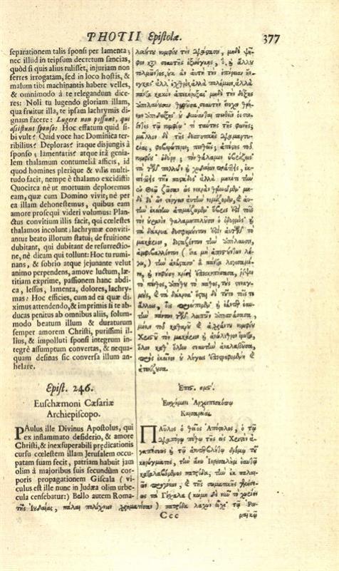 Φώτιος, Πατριάρχης Κωνσταντινουπόλεως. Ἐπιστολαί, Λονδίνο, R. Daniels, 1651.