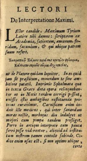 Μάξιμος Τύριος. Τοῦ Μαξίμου Τυρίου Λόγοι..., Ὀξφόρδη, E Theatro Sheldoniano, 1677.