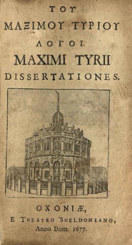 Μάξιμος Τύριος. Τοῦ Μαξίμου Τυρίου Λόγοι..., Ὀξφόρδη, E Theatro Sheldoniano, 1677.