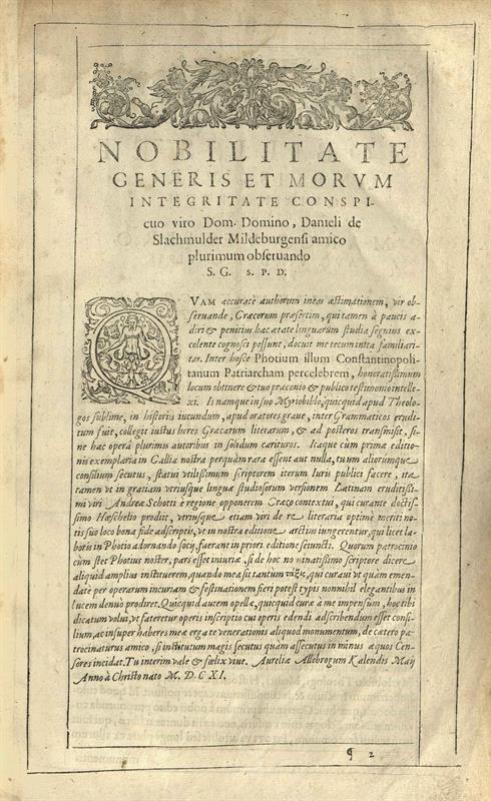 Φώτιος, Φωτίου Μυριόβιβλον --- Photii Myriobiblon --- Latinè verò reddidit et scholiis auxit Andreas Schottus Antverpianus ---, [Γενεύη], Oliva Pavli Stephani, 1611.