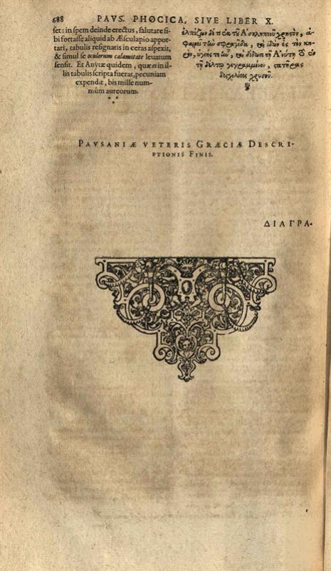 Παυσανίας. Παυσανίου τῆς Ἑλλάδος περιήγησις... A Guilielmo Xylandro Augustano..., Ἀννόβερο, Typis Wechelianis, apud haeredes Claudii Marnii, 1613.