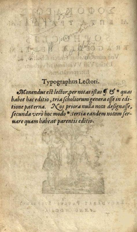 Σοφοκλῆς. Σοφοκλέους Αἱ Ἑπτὰ Τραγωδίαι. Sophoclis Tragoediae Septem... Ioachimi Cameranij, necnon Henrici Stephani annotationes..., Paulus Stephanus (Paul Estienne), 1603.