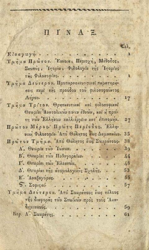 Wilhelm Gottlieb Tennemann, Σύνοψις τῆς ἱστορίας τῆς φιλοσοφίας..., μετάφραση Κ. Μ. Κούμας, δαπάνη Π. Νικολαΐδου, Βιέννη, Ἐκ τῆς Τυπογραφίας Ἰωάν. Βαρθ. Τεσεβεκίου, 1818.