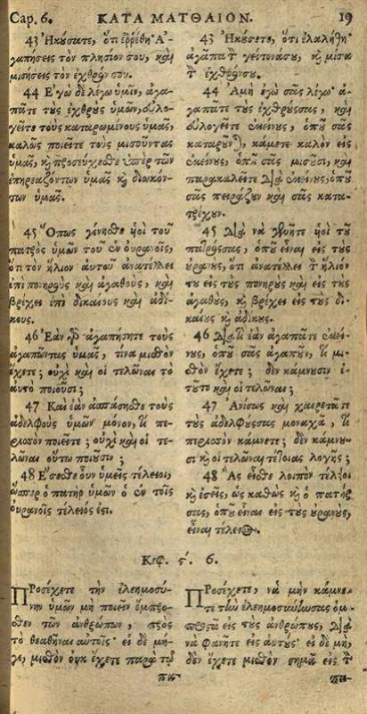 Ἡ Καινὴ Διαθήκη... Δίγλωττος... Τὸ Θεῖον Ἀρχέτυπον... Μετάφρασις εἰς κοινὴν διάλεκτον..., Ἅλλη τῆς Σαξονίας, ἐν τῷ Τυπογραφείῳ τοῦ Ὀρφανοτροφείου, 1710.