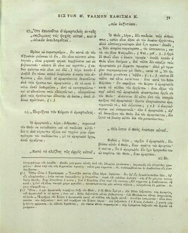 Εὐθύμιος Ζυγαδηνός [Ζιγαδηνός]. Ἑρμηνεία εἰς τοὺς ἑκατὸν πεντήκοντα Ψαλμοὺς τοῦ Προφητάνακτος καὶ Θεοπάτορος Δαβὶδ συγγραφεῖσα... Ἑλληνιστὶ... μεταφρασθεῖσα δὲ εἰς τὴν ἁπλουστέραν διάλεκτον παρὰ... Νικοδήμου ἁγιωρείτου..., Κωνσταντινούπολη, ἐν τοῖς Πατριαρχείοις, τ. Α´, 1819, τ. Β´, 1821.
