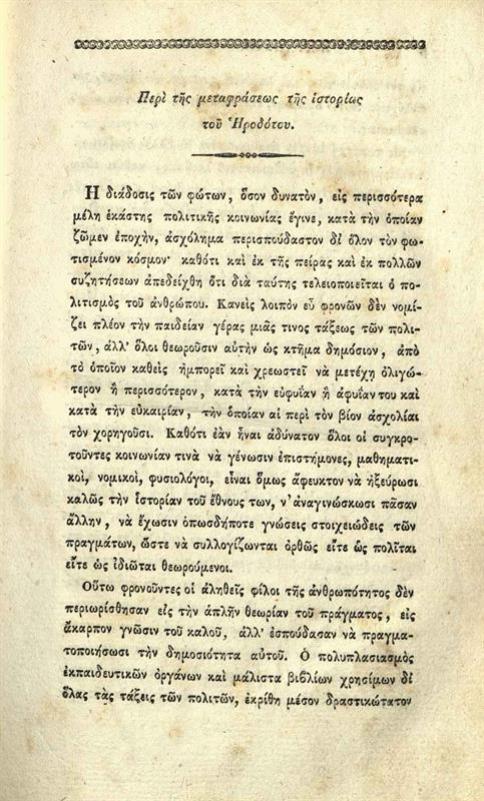 Ἡρόδοτος. Ἱστορία τοῦ Ἡροδότου μεταφρασθεῖσα ἐκ τῆς παλαιᾶς γλώσσης παρὰ Α. Ραδινοῦ μὲ σημειώσεις πρὸς εὐκολωτέραν κατάληψιν αὐτῆς καὶ πρὸς ἀνάπτυξιν διαφόρων μερῶν τοῦ κειμένου. Προσετέθη δὲ εἰς αὐτὴν καὶ μετάφρασις τοῦ Περὶ Κακοηθείας Ἡροδότου συγγράμματος τοῦ Πλουτάρχου, καὶ τῆς ἀναιρέσεως αὐτοῦ..., τ. Α´-Β´, Ἀθήνα, ἐκ τῆς Τυπογραφίας Ἀνδρέου Κορομηλᾶ, 1836.