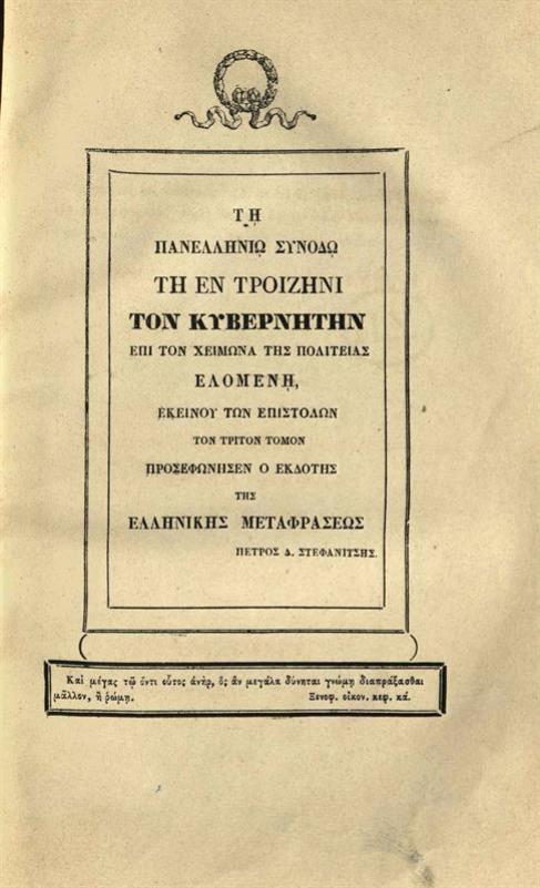 - Ἐπιστολαὶ Ι. Α. Καποδίστρια, Κυβερνήτου τῆς Ἑλλάδος, Διπλωματικαί, Διοικητικαὶ καὶ Ἰδιωτικαί, γραφεῖσαι ἀπὸ 8 Ἀπριλίου 1827 μέχρις 26 Σεπτεμβρίου 1831, Συλλεγεῖσαι μὲν ~~~ φροντίδι τῶν Ἀδελφῶν αὐτοῦ, Ἐκδοθεῖσαι δὲ παρὰ Ε. Α. Βετάν, ἑνὸς τῶν γραμματέων τοῦ Κυβερνήτου. Ἑλληνιστὶ δὲ ἐκδίδονται δαπάναις Π. Δ. Στεφανίτη Λευκαδίου, Ἰατροῦ, Μεταφρασθεῖσαι ἐκ τοῦ Γαλλικοῦ παρὰ Μιχαὴλ Γ. Σχινᾶ ---, Ἀθήνα, τόμ. A´, 1841, τόμ. Γ´, έκ τῆς Τυπογραφίας Γ. Χαρτοφύλακος, 1842, τόμ. Δ´, 1843.