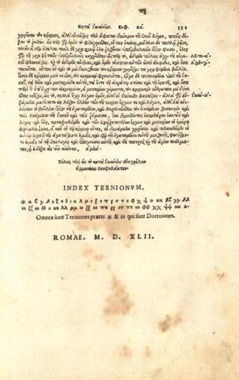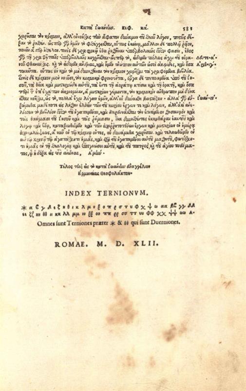 Θεοφύλακτος Βουλγαρίας. Θεοφυλάκτου Ἀρχιεπισκόπου Βουλγαρίας Ἑρμηνεία εἰς τὰ τέσσερα Εὐαγγέλια..., Ρώμη [A. Blado], 1542.