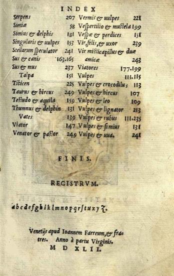 Αἴσωπος. Aesopi Phrygis Fabellae graece et latine, cum aliis opusculis, quorum index proxima refertur pagella, Βενετία, Giovanni Farri & fratres, 1542.