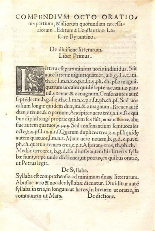 Κωνσταντῖνος Λάσκαρης. Constantini Laskaris Byzantini Graecae institutiones..., Βενετία, Giovanni Farri & fratres, 1542.