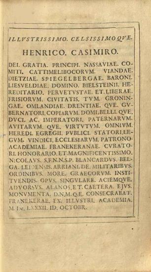 Ἀρριανὸς - Ἐπίκτητος, Ἀρριανοῦ Τακτικά, Περίπλοι, Κυνηγετικός, καὶ Ἐπικτήτου Στοικοῦ Ἐχγειρίδιον, Ἄμστερνταμ, apud Janssonio - Waesbergios, 1683.