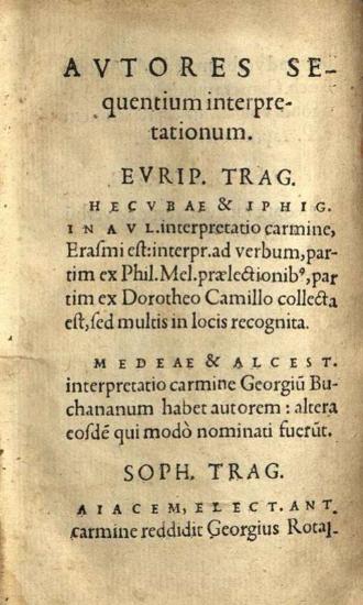 Αἰσχύλος, Σοφοκλῆς, Εὐριπίδης. Tragoediae Selectae Aeschyli, Sophoclis, Euripidis... [Γενεύη], Ἑρρίκος Στέφανος, 1567.