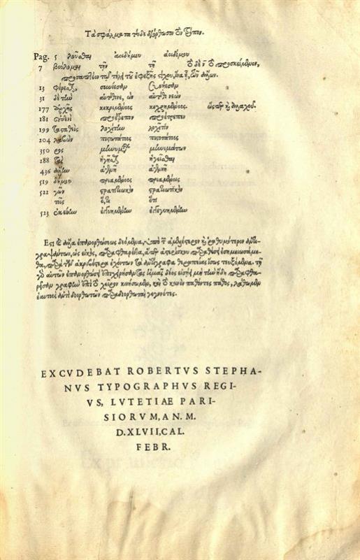 Διονύσιος Ἁλικαρνασσεύς. Διονυσίου τοῦ Ἁλικαρνασσέως Ρωμαϊκῆς Ἀρ-χαιολογίας Βιβλία Δέκα..., Παρίσι, ex officina Rob. Stephani, Φεβρουάριος 1546.