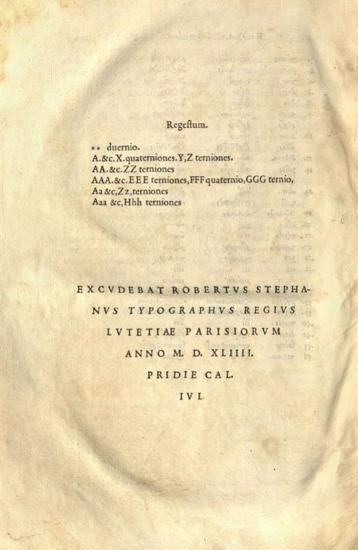 Ἐκκλησιαστικῆς Ἱστορίας Εὐσεβίου τοῦ παμφίλου... Τοῦ αὐτοῦ εἰς τὸν βίον τοῦ... κωνσταντίνου βασιλέως... Σωκράτους σχολαστικοῦ... Θεοδωρίτου ἐπισκόπου κύρου... Ἐκλογῶν ἀπὸ τῆς ἐκκλησιαστικῆς ἱστορίας θεοδώρου ἀναγνώστου... Ἑρμείου σωζομένου σαλαμινίου... Εὐαγρίου σχολαστικοῦ ἐκκλησιαστικῆς ἱστορίας..., Παρίσι, ex officina Roberti Stephani, 1544.