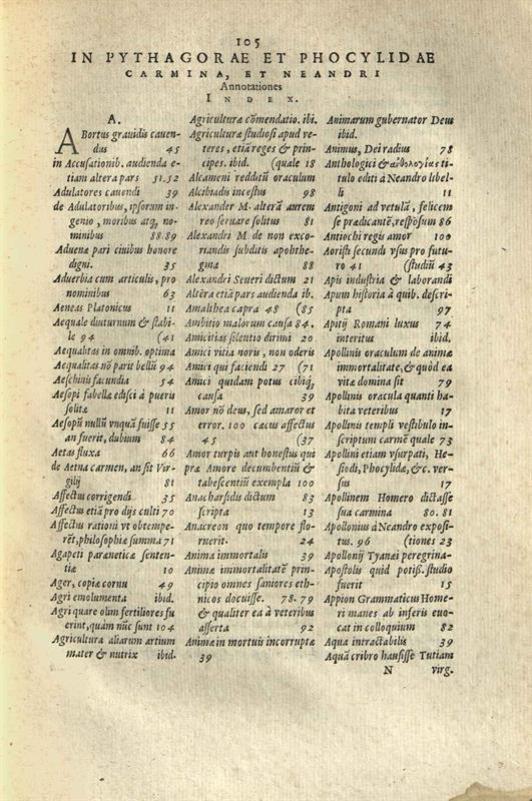 Πυθαγόρας - Φωκυλίδης - Θέογνης κ.ἄ. Opus aureum et scholasticum, 2 τόμ. [Ernst Vögelin] Λειψία, 1577.