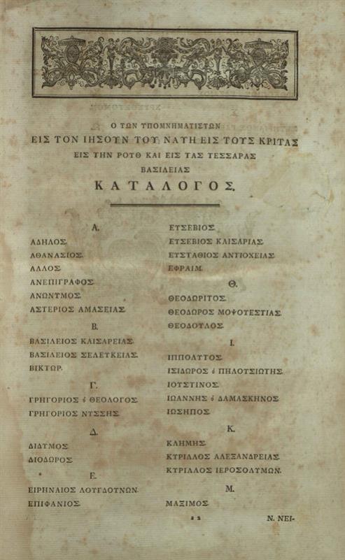 Νικηφόρος Θεοτόκης. Σειρὰ ἑνὸς καὶ πεντήκοντα ὑπομνηματιστῶν εἰς τὴν Ὀκτάτευχον καὶ τὰ τῶν Βασιλειῶν..., τ. Α´-Β´, Λειψία, ἐν τῇ τυπογραφίᾳ τοῦ Βρέιτκοπφ, 1772-1773.