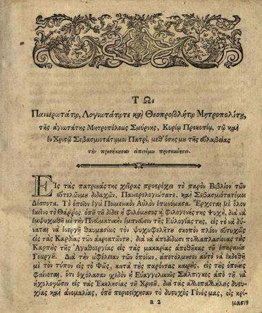 Προκόπιος Πελοποννήσιος. Βιβλίον καλούμενον Αὐλὸς Ποιμενικός, Περιέχον ψυχωφελεῖς διδαχὰς ἐν πάσαις ταῖς Κυριακαῖς καὶ Δεσποτικαῖς ἑορταῖς μιᾶς ἑπταμηνίας..., Λειψία, Τυπογραφία τοῦ Βρέιτκοπφ, 1780.