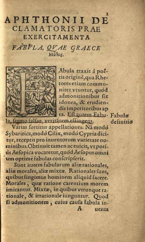 Ἀφθόνιος. Aphthonii Sophistae Progymnasmata... A Rodolpho Agricola... A Ioanne Maria Catanaeo Latinitate donata: Cum... Scholijs Reinhardi Lorichij Hadamarij..., Κολονία, Arnold Birckmann, 1566.