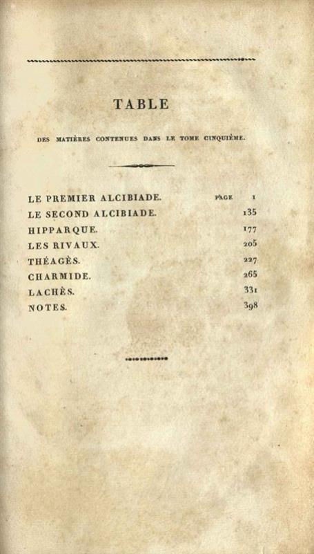 - Πλάτων. Oeuvres de Platon, traduites par Victor Cousin..., Παρίσι, Bossange frères, Libraires, τ. ΙΙ, 1824. τ. ΙΙΙ, 1826, τ. IV, 1827, τ. V, 1823, Pichon et Didier, Libraires, τ. VI-VII, 1831, Pichon, Libraire-Editeur, τ. VIII, 1832, Rey et Gravier, Libraires, τ. ΙΧ, 1833, τ. Χ, 1834, τ. ΧΙ, 1837, τ. ΧΙΙ, 1839, P.J. Rey, Libraire, τ. ΧΙΙΙ, 1841.