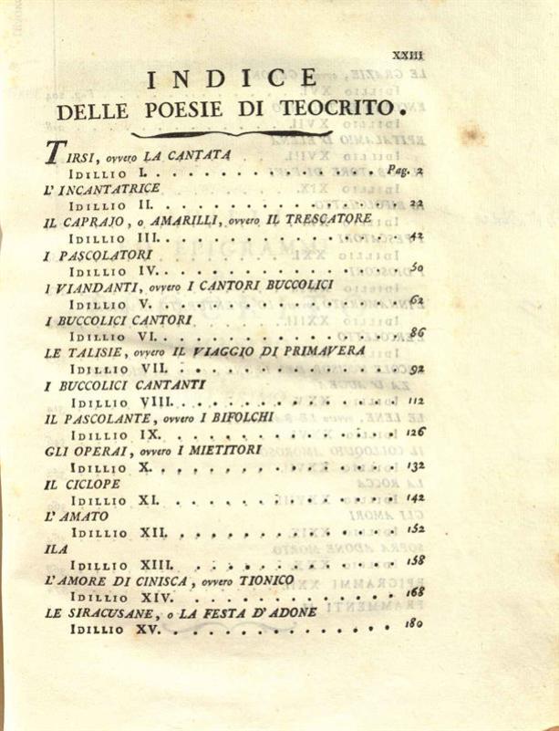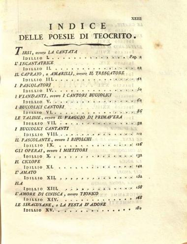 Θεόκριτος - Μόσχος - Βίων - Βιργίλιος. Simmia Greco-latini con la Buccolica di Virgili Latino-Graeca volgarizzati... da Eritisco Pilenejo..., τ. Α´, Πάρμα, Dalla Stamperia Reale, 1780.