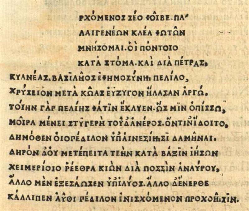 Ἀπολλώνιος ὁ Ρόδιος, [Ἀργοναυτικά], [Ἔκδοση μὲ τὴν ἐπιμέλεια τοῦ Ἰανοῦ Λάσκαρη], Φλωρεντία [Laurentius de Alopa], 1496.