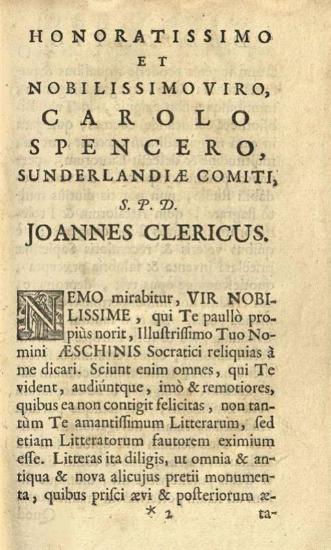 Αἰσχίνης ὁ Σωκρατικός. Aeshinis Socratici Dialogi tres Graece et Latine... vertit et notis illustravit Ioannes Clericus..., Ἄμστερνταμ, Petrus de Cour, 1711.