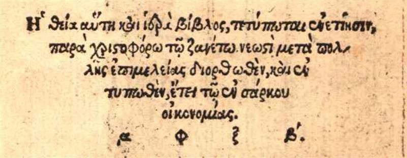 Δαμασκηνὸς Στουδίτης. Βιβλίον ὀνομαζόμενον Θησαυρὸς..., Βενετία, Christofano di Zannetti, 1562.