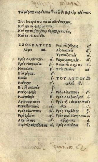 Ἰσοκράτης. Ἰσοκράτους Ἀθηναίου Σοφιστοῦ Λόγοι καὶ Ἐπιστολαί, Βενετία, ex officina Farrea, 1542.