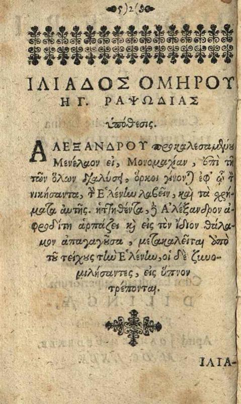 Ὅμηρος. Homeri Iliados ... Liber III. Cum interpretatione Latina..., Dillingen, apud Joannem Federii, 1669.