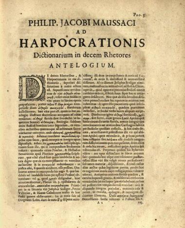 Ἁρποκρατίων. Ἁρποκρατίωνος Λεξικὸν τῶν Δέκα Ρητόρων... Nicolaus Blancardus... Philippi Jacobi Maussaci Notae... Henrici Valesii Notae..., Λέιντεν, J.A. Gelder. J.A. de la Font, 1683.