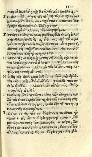 Ἐμμανουὴλ Χρυσολωρᾶς. Ἐρωτήματα τοῦ Χρυσολωρᾶ. Περὶ ἀνωμάλων ῥημάτων. Περὶ σχηματισμοῦ τῶν χρόνων ἐκ τῶν Χαλκοκονδύλου. Τὸ τέταρτον τοῦ Γαζῆ, περὶ συντάξεως. Περὶ ἐγκλητικῶν. Γνῶμαι μονόστιχοι ἐκ διαφόρων ποιη­τῶν. Κάτωνος γνῶμαι ἃς μετήνεγκεν ὁ πλανούδης, Φλωρεντία, Benedicto Giunta, Ἰανουάριος 1540.