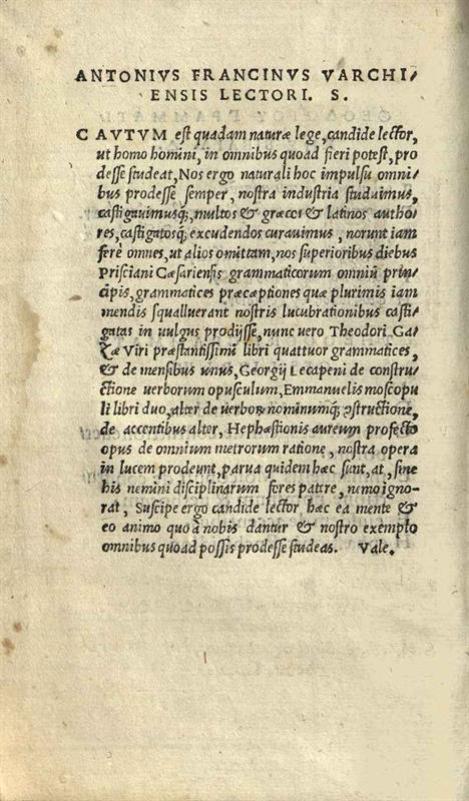 Θεόδωρος Γαζῆς. Θεοδώρου Γραμματικῆς Βιβλία Δ´. Περὶ μηνῶν... Γεωργίου Λεκαπηνοῦ περὶ συντάξεως ῥημάτων. Ἐμμανουὴλ Μοσχοπούλου περὶ τῆς τῶν ὀνομάτων καὶ ῥημάτων συντάξεως... περὶ προσῳδιῶν. Ἡφαιστίωνος ἐγχειρίδιον, Φλωρεντία, per haeredes Philippi Iuntae, Ἀπρίλιος 1526.