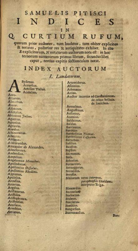 Quintus Curtius Rufus. Alexander Magnus et in illum Commentarius, Οὐτρέχτη, Franciscus Halmam, 1693.