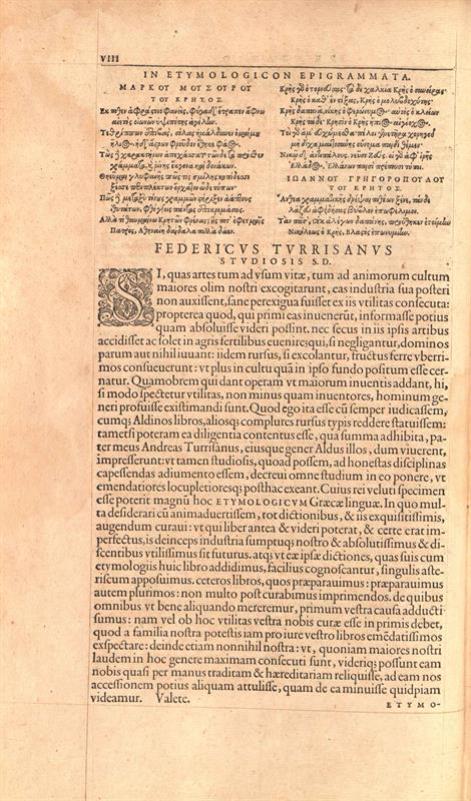 Ἐτυμολογικὸν τὸ Μέγα. Ἤγουν Ἡ Μεγάλη Γραμματική... [Ἔκδοση μὲ τὴν ἐπιμέλεια τοῦ Fridericus Sylburgius] [Χαϊδελβέργη], Hieronymus Commelinus, 1594.