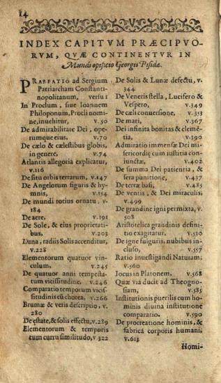 Γεώργιος Πισίδης. Ἑξαήμερον ἤτοι Κοσμογονία... Ἰαμβεῖα εἰς τὸν μάταιον βίον... [Χαϊδελβέργη], Hieronymus Commelinus, 1596.