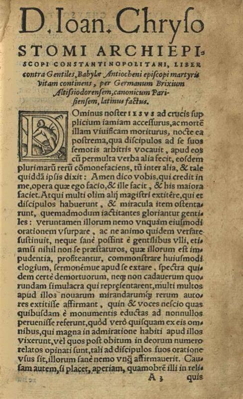 Ἰωάννης ὁ Χρυσόστομος. D. Ioan. Chrysostomi... Apologiarum et Epistolarum opus..., Ἀμβέρσα, in aedibus Ioannis Steelsii, 1553.