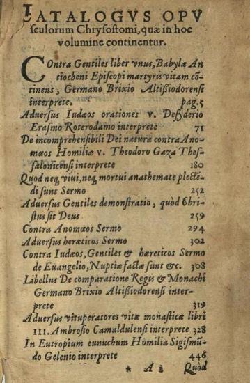 Ἰωάννης ὁ Χρυσόστομος. D. Ioan. Chrysostomi... Apologiarum et Epistolarum opus..., Ἀμβέρσα, in aedibus Ioannis Steelsii, 1553.