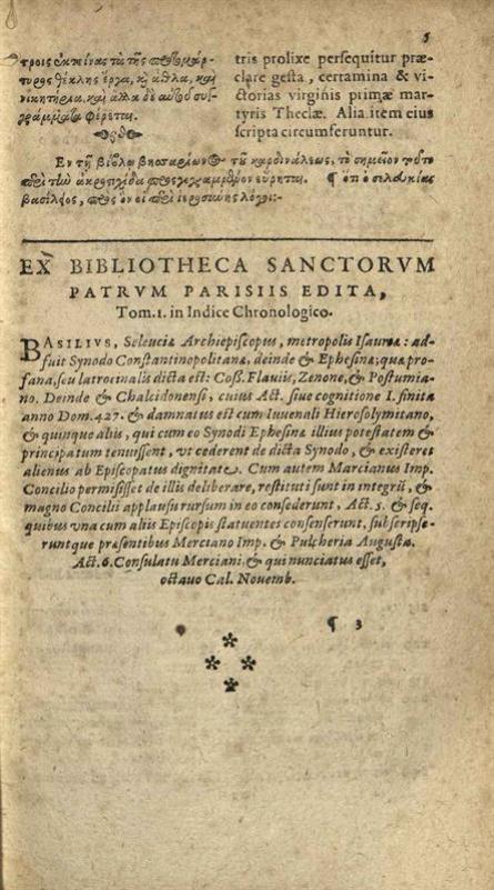Βασίλειος Σελευκείας. Μακαρίου Βασιλείου Ἐπισκόπου Σελευκίας Τὰ σωζόμενα ἅπαντα... B. Basilii... Opera..., Λέιντεν, in bibliopolio H. Commelini, 1596.