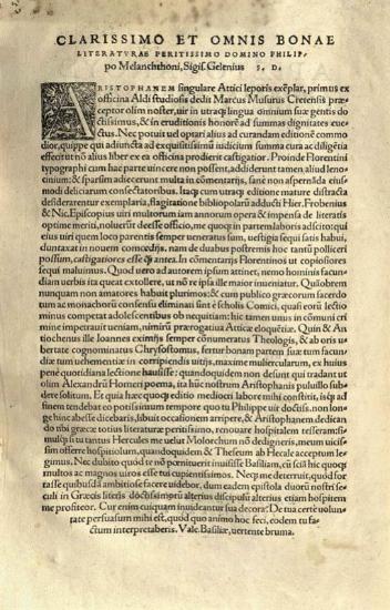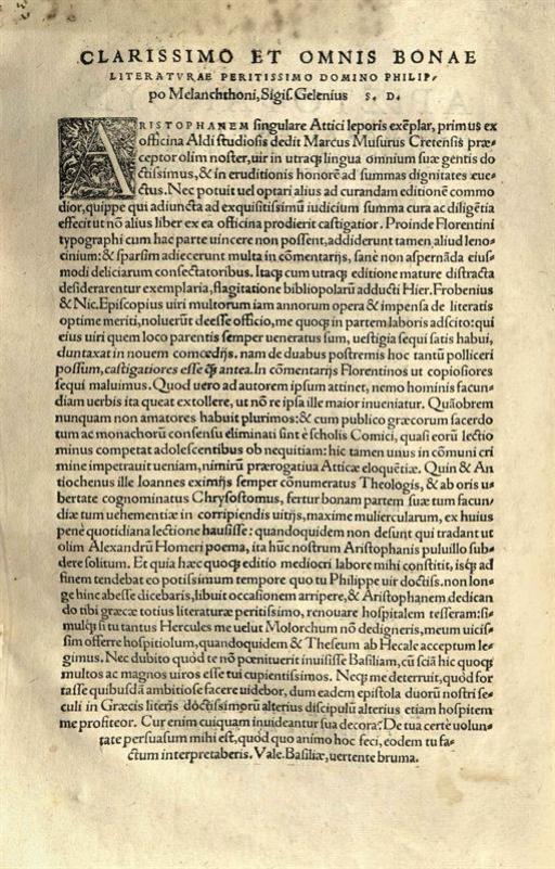 Ἀριστοφάνης. Ἀριστοφάνους Κωμωδίαι Ἐννέα μετὰ σχολίων..., Βασιλεία, in officina Frobeniana, 1547.