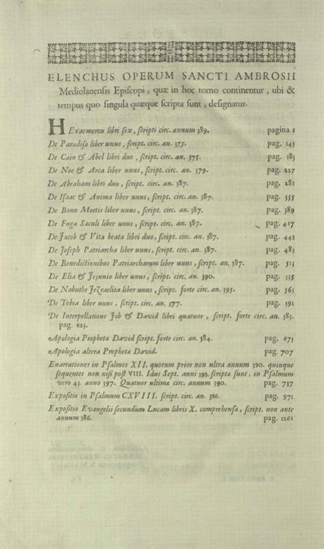Ἀμβρόσιος Μεδιολάνων, Sancti Ambrosii Mediolanensis Episcopi Opera ---, tom. I, Johannis Baptistæ Coignard, Παρίσι 1686.