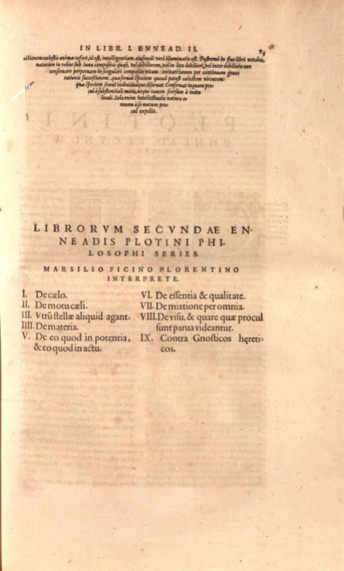Πλωτίνος. Plotini... Operum Philosophicorum Omnium Libri LIV, in sex Enneades distributi... cum Latina Marsilii Ficini interpretatione & commentatione..., Βασιλεία, ad Perneam Lecythum, 1580.
