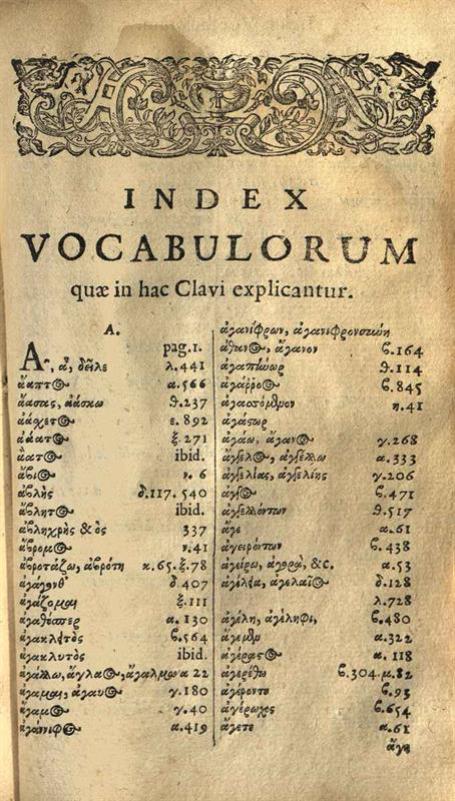 Μιχαὴλ Ἀποστόλης (Ἀποστόλιος). Clavis Homerica, sive Lexicon... Proverb. Graec. & Lat...., Ρότερνταμ, Arnold Leers, 1662.