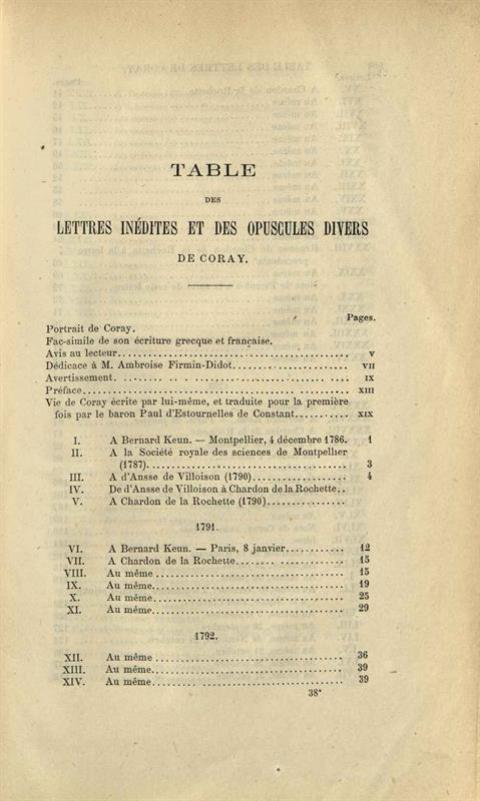 Ἀδαμάντιος Κοραῆς. Lettres inédites de Coray à Chardon de la Rochette (1790-1796)..., Παρίσι, Librairie de Firmin-Didot, 1877.
