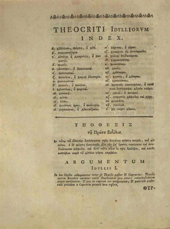Θεόκριτος. Theocriti Reliquae Utrogue Sermonecum scholiis Graecis et commentariis integris... H. Stephani, I. Scaligeri, Βιέννη & Λειψία, G.A.I. Loeper, 1765.