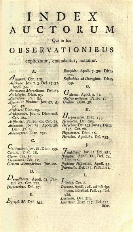 Καλλίμαχος, Callimachi Hymni, Epigrammata et Fragmenta --- recensuit --- Jo. Augustus Ernesti ---, Leiden, Apud Samuelem et Joannem Luchtmans, τ. Ι-II, 1761.