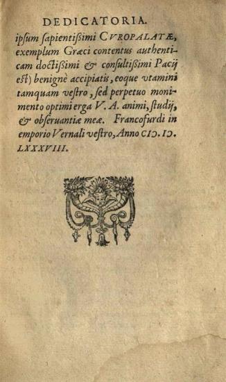 [Γεώργιος Κωδινός]. Τοῦ σοφωτάτου Κουροπαλάτου, περὶ τῶν ὀφφικιάλων τοῦ παλλατίου Κωνσταντινουπόλεως, καὶ τῶν ὀφφικίων τῆς μεγάλης Ἐκκλησίας... [Λυών], Ioannes Mareshallus Lugdunensis, 1588.