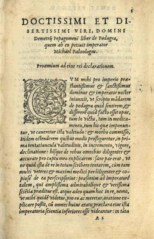Δημήτριος Πεπαγωμένος. Demetrii Pepagomeni Liber De Podagra, et id Genus Morbis..., Παρίσι, Guillaume Morel, 1558.