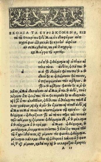 Θεόκριτος. Θεοκρίτου εἰδύλλια..., Βενετία, ex officina Farrea, 1543.