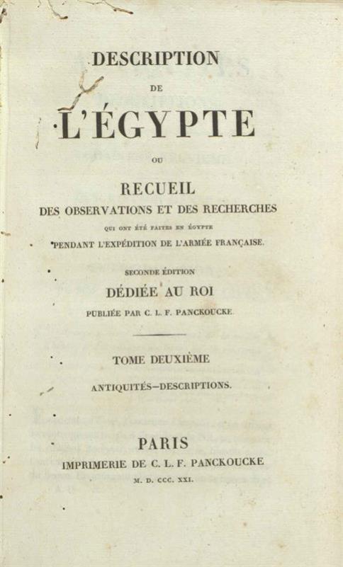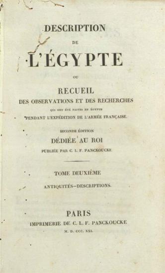 Description de L Égypte ou Recueil des Observations et des Recherches qui ont été faites en Égyote pendant l’expédition de l’armée française. Seconde édition ---, Παρίσι, Imprimerie de C. L. F. Panckoucke, 1820-1831nulL