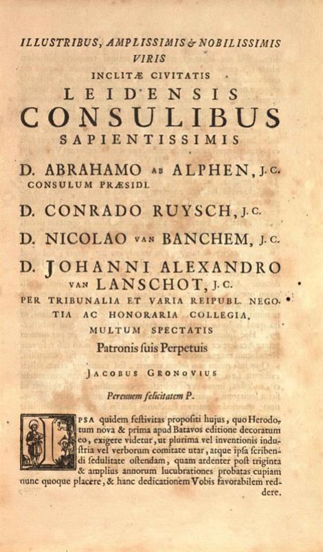 Ἡρόδοτος, Ἁλικαρνασσεύς. Ἱστοριῶν Λόγοι Θ´ ἐπιγραφόμενοι Μοῦσαι..., Λέιντεν, Samuel Luchtmans, 1715.